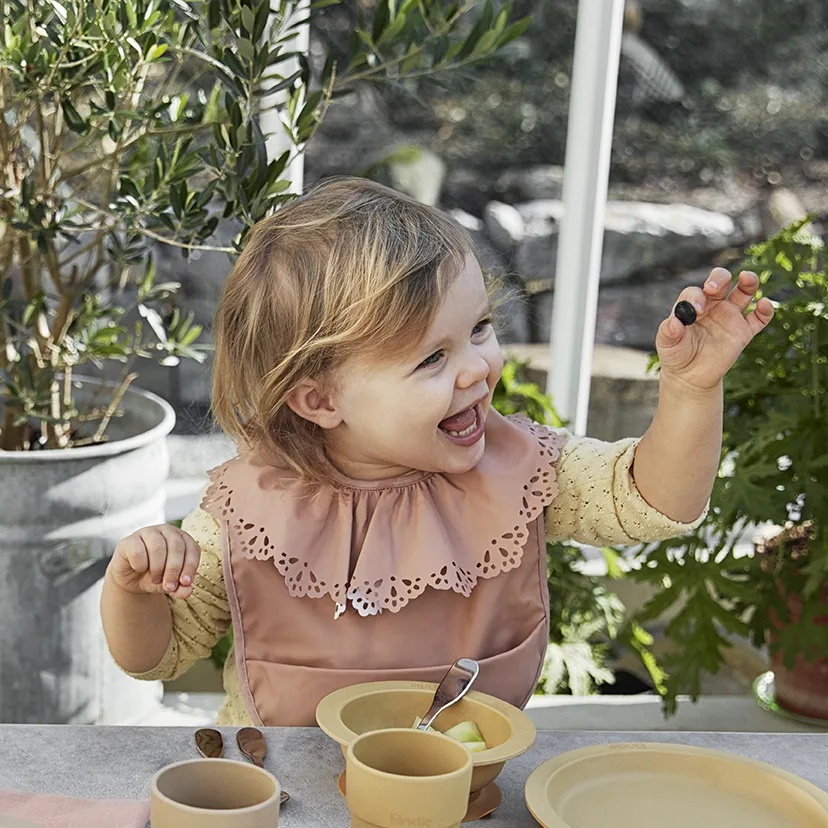 Elodie Detailsโ Baby Bibs are fast becoming a favourite for many parents. With their Oeko-Tex certified quick-dry material, perfectly smooth fit and attention to detail itโs no wonder. Just rinse or wipe it clean after each use and it dries up in minutes, ready to go again. The wide fit covers both shoulders and chest, and the flexible front pocket catches all spills or crumbs, resulting in less floor scrubbing. Attaches in the neck with a large and soft Velcro. Environmentally friendly and full off functions, but most important โ youโre little one can look great even while making a mess in the kitchen.